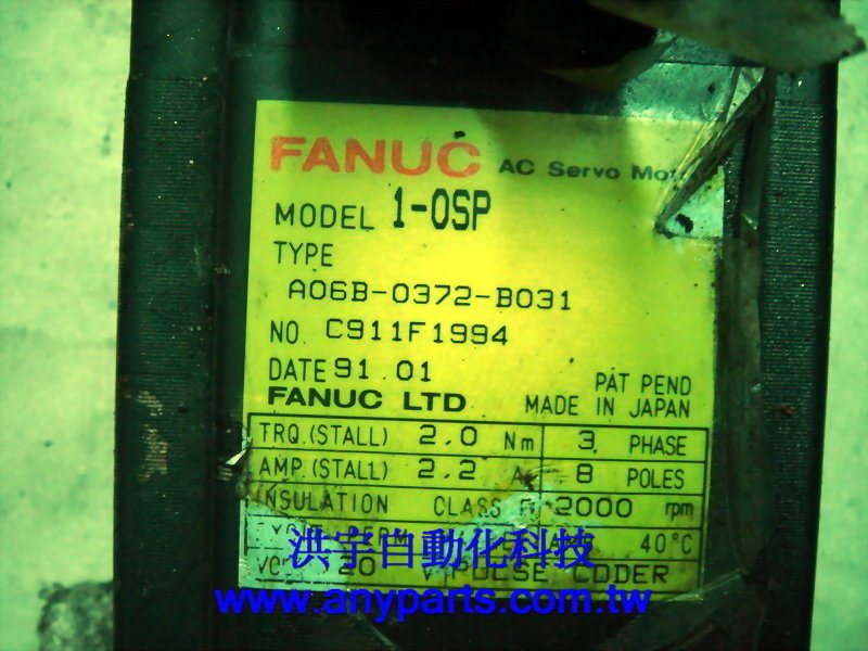 FANUC AC SERVO MOTOR MODEL: 1-0SP TYPE: A06B-0372-B031