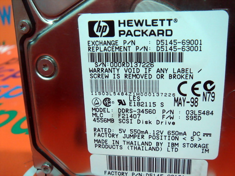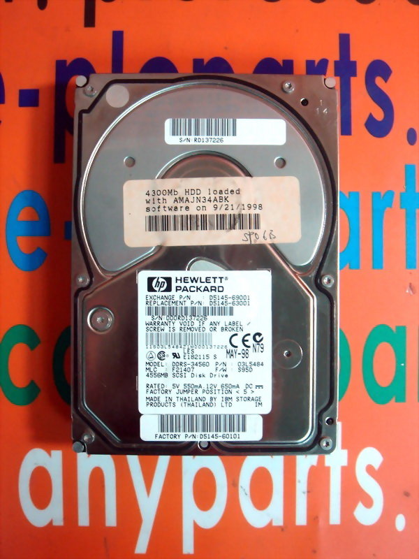 HEWLETT PACKARD(HP) / IBM HARD DRIVE DDRS-34560 / 03L5484 / D5145-69001 / D5145-63001 4.5GB / 68PIN