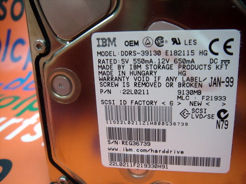 IBM HARD DRIVE DDRS-39130 / 22L0211 9.1G 68PIN