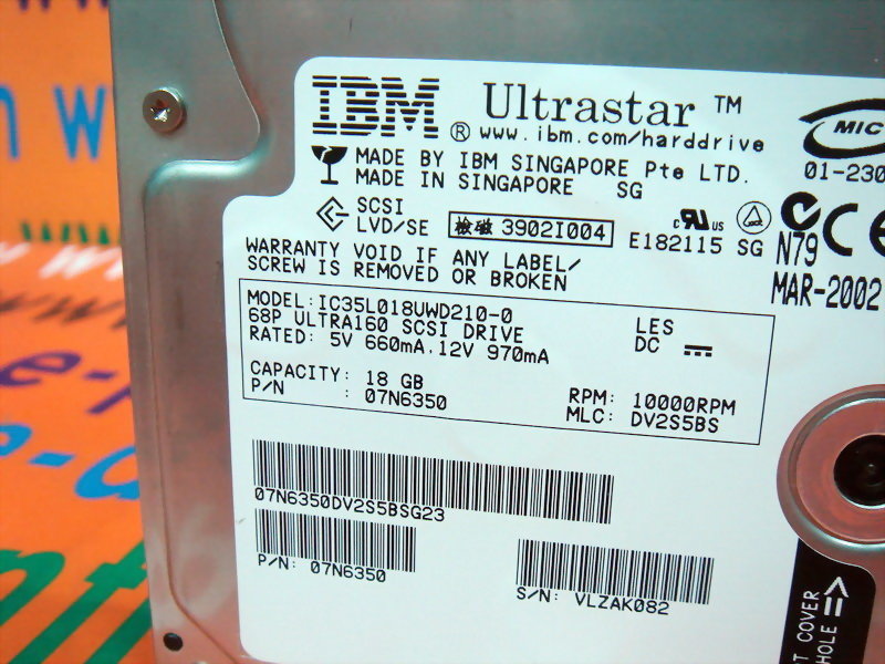 IBM HARD DRIVE IC35L018UWD210-0 / 07N6350 18GB / 68PIN / 10000RPM