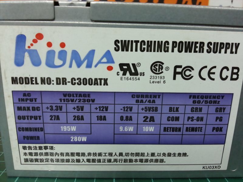 KUMA DR-C300ATX SWITCHING POWER SUPPLY