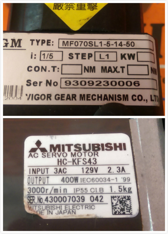 MITSUBISHI MF070SL1-5-14-50 WITH HC-KFS43 MOTOR