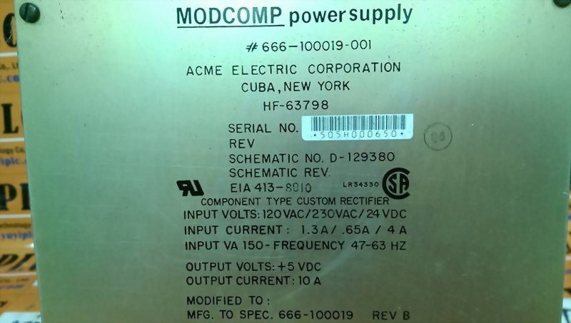 MODCOMP 666-100019-001 POWER SUPPLY