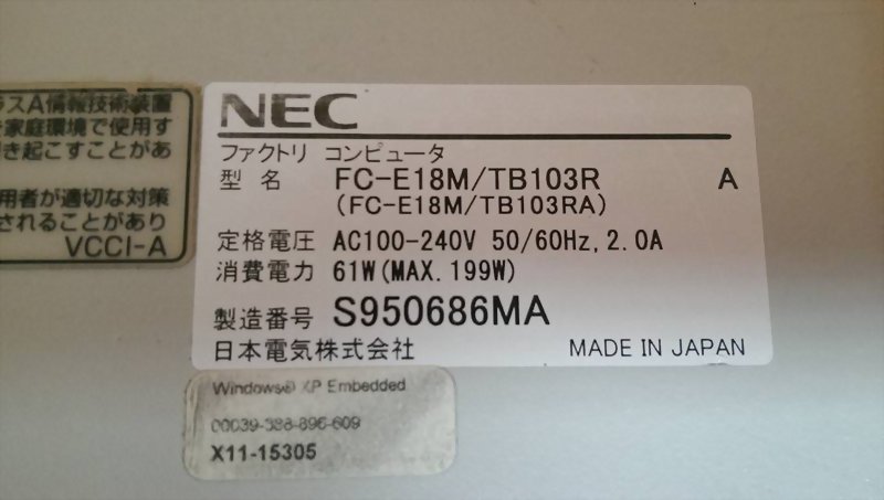 型號 : NEC INDUSTRIAL COMPUTER FC-E18M-TB103R