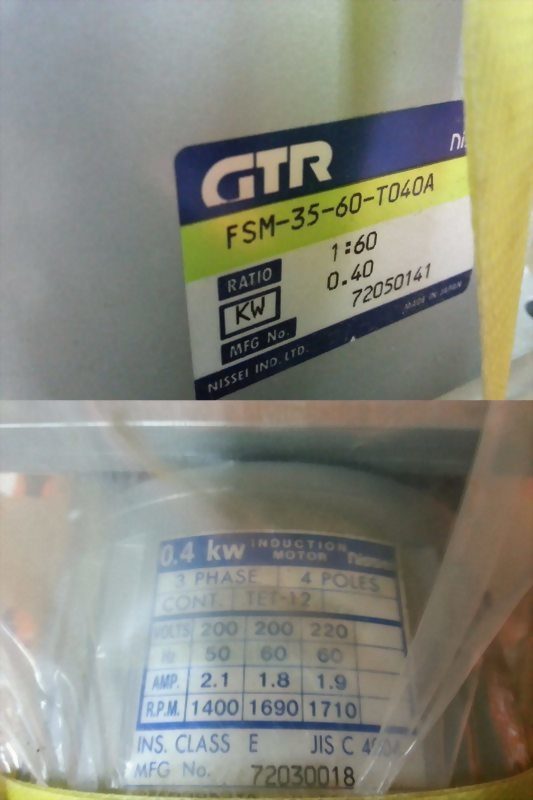 NISSEI GTR FSM-35-60-T040A GEARED MOTOR