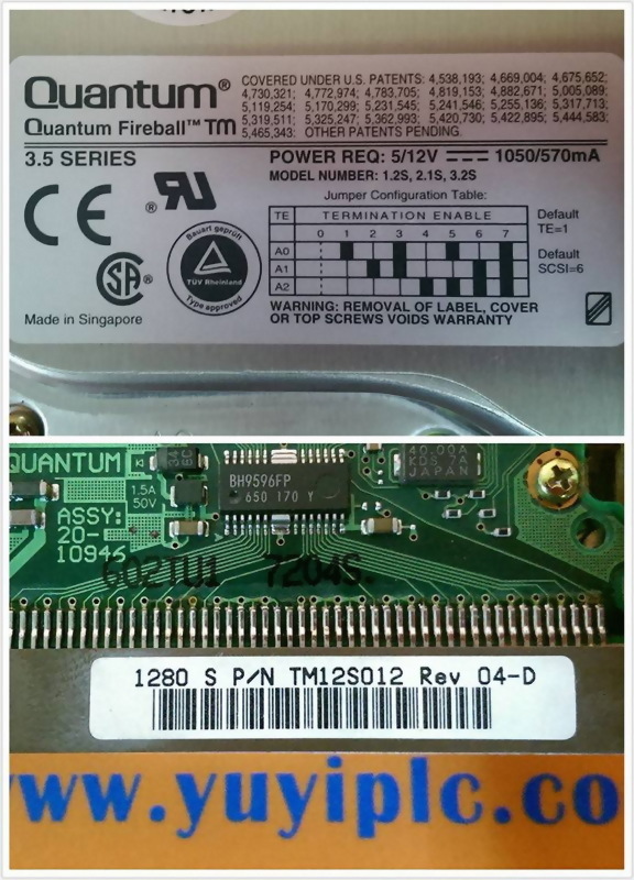 QUANTUM 1280S P/N TM12S012 REV 04-D SCSI HARD DISK