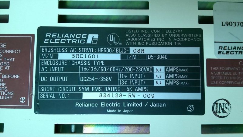 RELIANCE HR500 SRUSHLESS AC SERVO