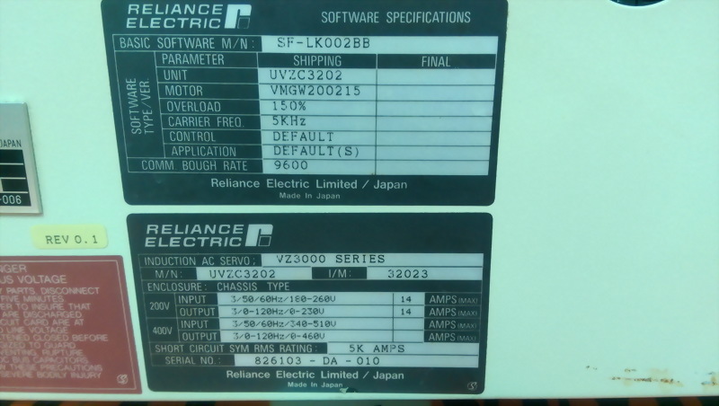RELIANCE VZ3000 EX102-2.2 / UVZC3202 WITH OPCU-2 AC SERVO CONTROL DRIVE