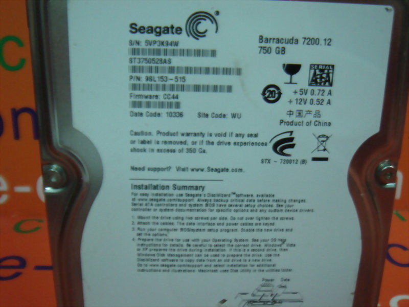 SEAGATE ST37050528AS 750GB IDE HARD DISK