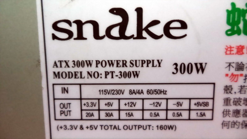 SNAKE ATX300W POWER SUPPLY PT-300W