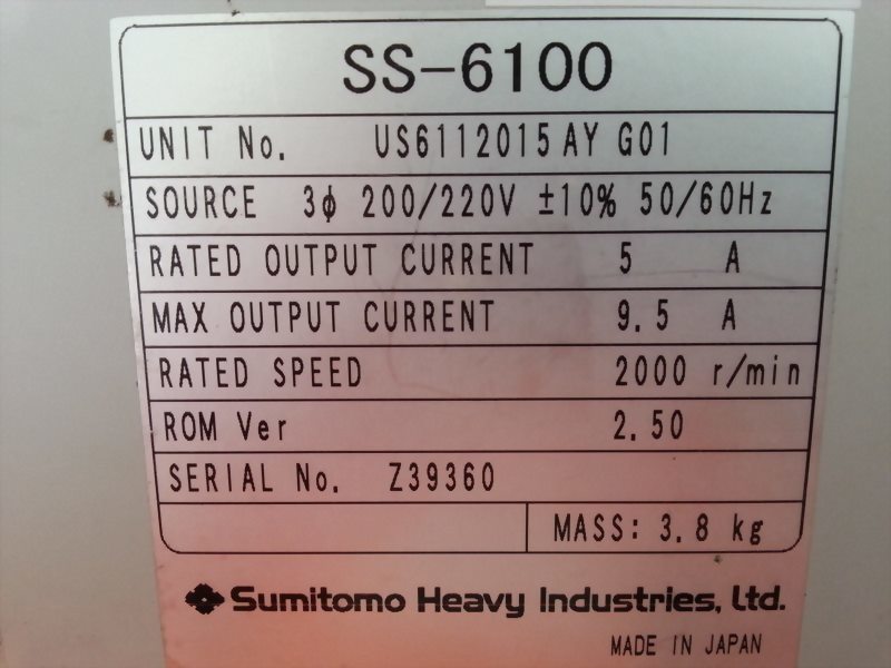 SUMITOMO SS-6100 US6112015AY G01 AC SERVO DRIVE
