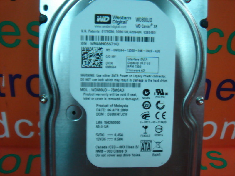WESTERN DIGITAL WD800JD-75MSA3 80GB SATA HARD DRIVE