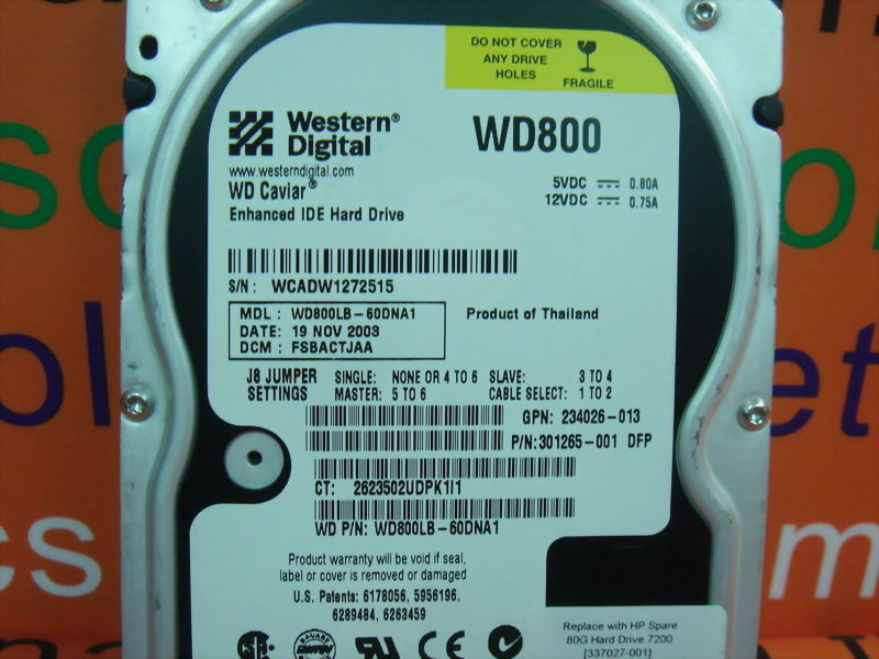 WESTERN DIGITAL WD800LB-60DNA1 80GB IDE