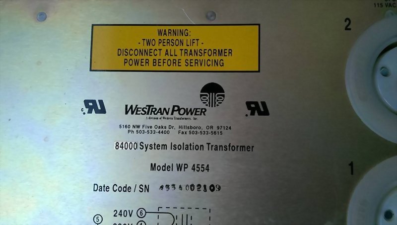 WESTRAN POWER 84000 SYSTEM ISOLATI TRANSFORMER WP4554