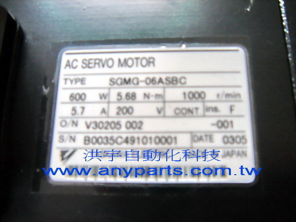 型號 : YASKAWA AC SERVO MOTOR SGMG-06ASBC 600W 200V 5.7A