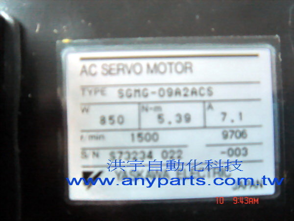 型號 : YASKAWA AC SERVO MOTOR SGMG-09A2ACS 850W 7.1A
