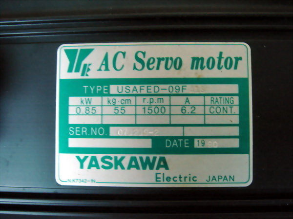 YASKAWA AC SERVO MOTOR USAFED-09FA1S 0.85kW 6.2A