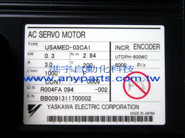 型號 : YASKAWA AC SERVO MOTOR USAMED-03CA1 0.3KW 3.0A 200V / ENCODER UTOPH-600WC
