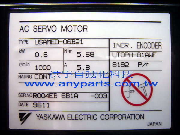 型號 : YASKAWA AC SERVO MOTOR USAMED-06B21 0.6kW 5.8A / ENCODER UTOPH-81AWF