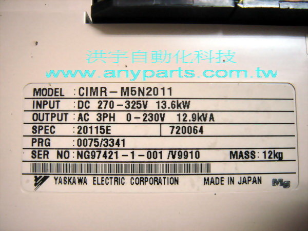 型號 : YASKAWA PLC INVERTER VS-626M5 CIMR-M5N2011 SPEC:20115E 200V CLASS 3PH 11kW