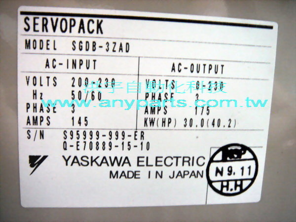 型號 : YASKAWA PLC SERVOPACK SGDB-3ZAD Y278/Y174/Y351/Y352/Y353 30kW