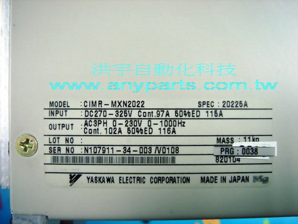 型號 : YASKAWA PLC VARISPEED 626MX INVERTER CIMR-MXN2022 SPEC:20225A 200V