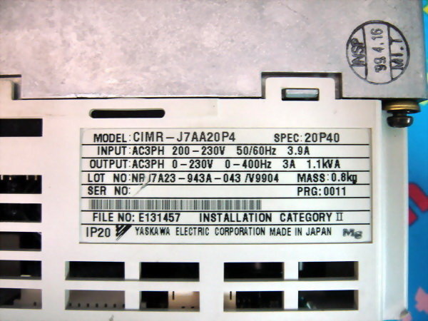 YASKAWA PLC VS mini J7 CIMR-J7AA20P4 SPEC:20P40