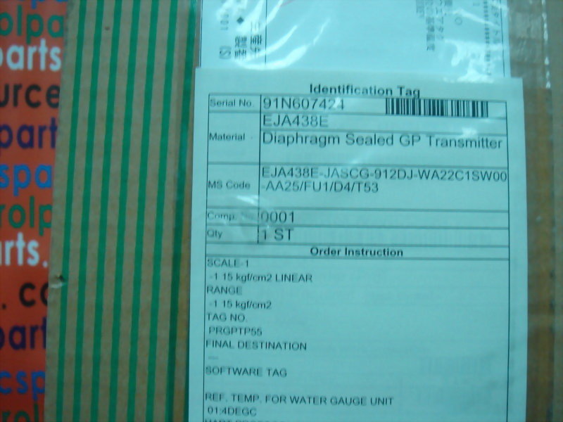 YOKOGAWA DIAPHRAGM SEALED GP TRANSMITTER EJA438E-JASCG-912DJ-WA22C1S-WOO-AA25/FU1/D4/T53